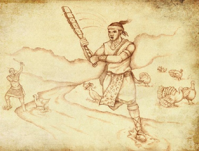 The hero in the next picture, AMMON DEFENDS THE FLOCKS OF KING LAMONI is Ammon. He is described as, “a strong and mighty man.” He had to be, to do the superhuman deeds he accomplished.