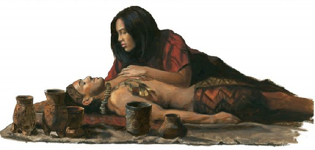 I love the story of Abish because it shows that even when something goes wrong, the Lord can still have a purpose in it. Though Abish was brought to tears when her actions of gathering others to witness the miracle had seemed to backfire, many were present to witness the testimony of the queen after the queen woke up. This led to the conversion of many. Abish played a vital role. Here Abish is reaching to see if she can wake the queen.