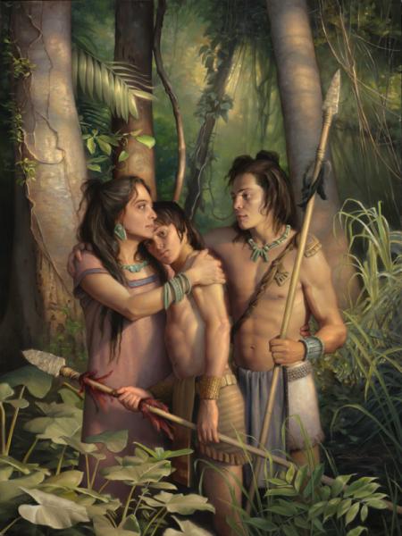 I had my nephews pose for me and their ages are 15, 14, and 13 the ages of those young men who fought. We are of Hawaiian decent and believe we are literal descendants of Lehi and Nephi, giving the painting a more authentic look than just having any young men pose for the picture.